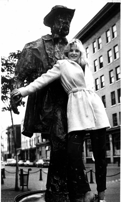 May 13,1980 file photo of Playmate of the year Dorothy Stratten frolics with Gassy Jack statue during her Gastown tour. Dorothy, from Coquitlam, BC. will recieve nearly $200,000 in cash, gifts and promotional fees this year in addition to her Playboy title. Photo by Wayne Leidenfrost/The Province [PNG Merlin Archive]
